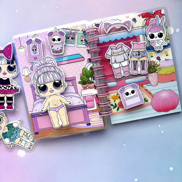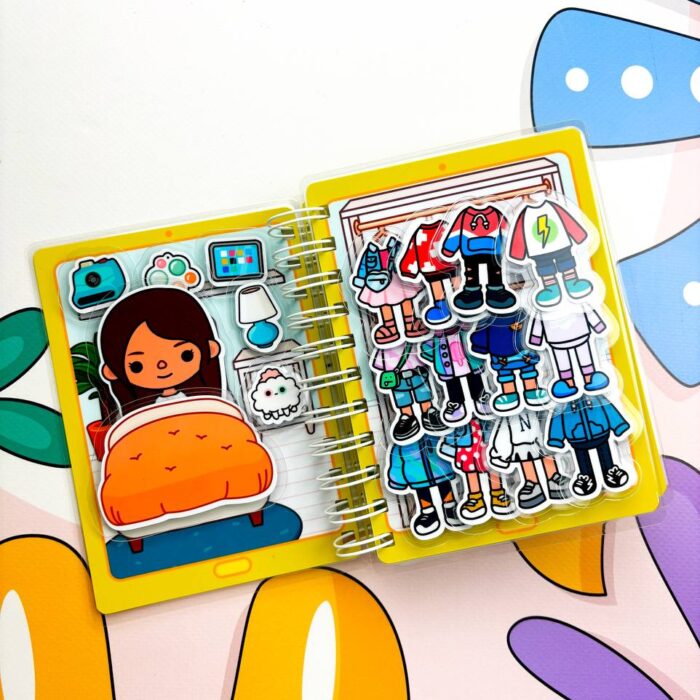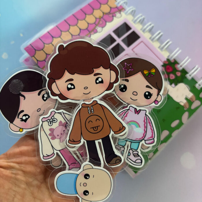 Este formato mini A6 con 6 páginas es ideal para llevar a cualquier lugar. Cada una de las tres superchicas tiene su propia habitación, llena de detalles que reflejan su estilo y personalidad únicos. Las muñecas de colores brillantes con velcro permiten que los niños jueguen libremente, moviéndolas y creando sus propias historias. ¡Ideal para la diversión y el desarrollo de la imaginación!
